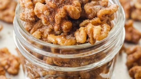 These buttery walnuts are sweet and crispy thanks to maple syrup and a dusting of cinnamon sugar. The perfect addition to any cheeseboard!