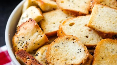 Use your toaster oven or air fryer oven to whip up a quick batch of crunchy bagel chips. Perfect for serving alongside spinach dip!