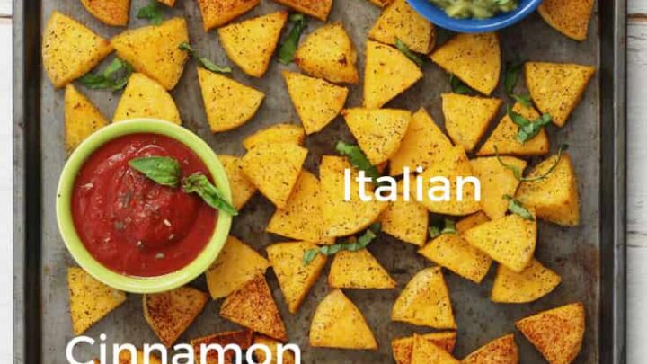 Crispy and sweet, these easy 4-ingredient cinnamon tortilla chips can be made in a toaster oven or air fryer.