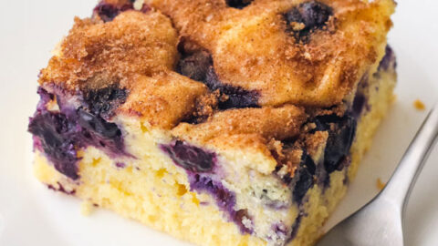 Packed with blueberries, this doctored-up cake mix recipe is one you’ll want to make again and again. The addition of yogurt or sour cream ensures it’s always super moist.