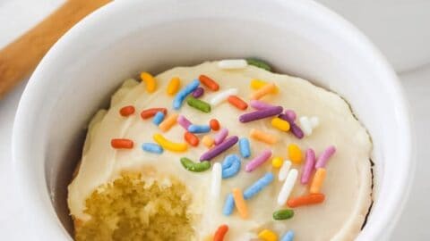 Use your favorite cake mix flavor and toppings like whipped cream and berries, frosting and sprinkles, or a scoop of ice cream for an extra indulgent treat.