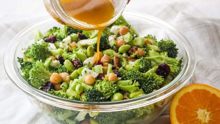 This quick vinaigrette is super refreshing with a bright orange flavor. We love to use it on fresh salads but it’s also tasty drizzled over roasted vegetables (especially broccoli).