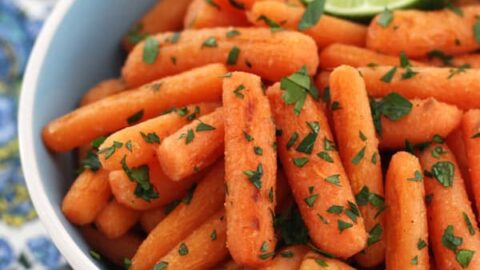 This 20-minute healthy side is sure to please. Sweet baby carrots go perfectly with ginger, garlic, and a pop of fresh lime juice.