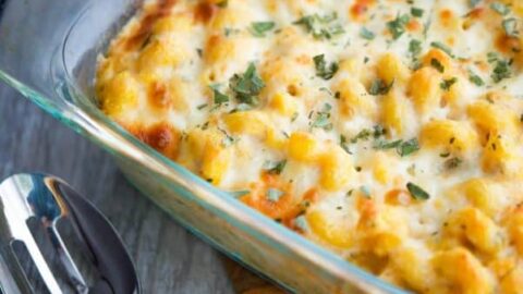 Rich and creamy baked macaroni and cheese with a fun fall twist! Use an 8" x 8" or 11" x 7" baking dish to make this easy recipe from Carrie's Experimental Kitchen in your toaster oven.