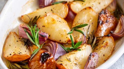 Tender sweet pears baked with fresh herbs and red onion make a stunning addition to any holiday feast in this unique recipe from Sprinkles and Sprouts.