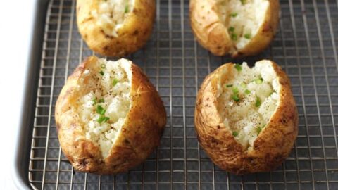 With perfectly crispy skin and fluffy interior, you can never go wrong with classic baked potatoes. Bring on the butter!