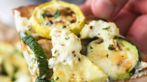 Zucchini and lemon ricotta flatbread is a fun summer meal for one or appetizer for two and a great way to use up summer squash.